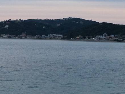 Blick von der Taverne Akrogiali auf das Hotel bei Tag