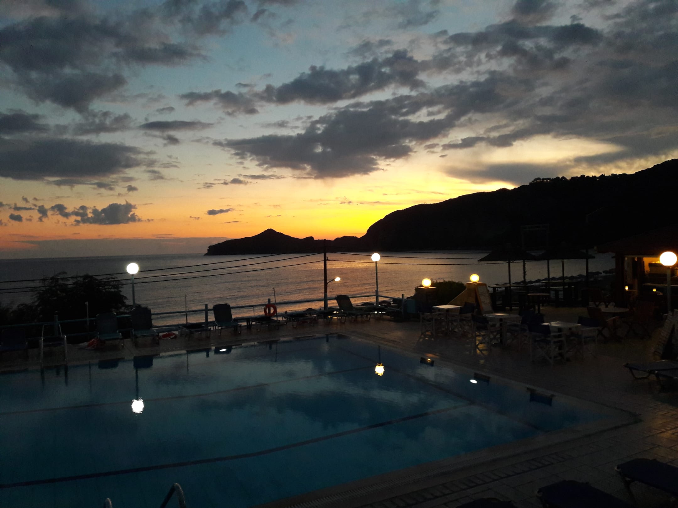 abends Pool, Meer und Sonnenuntergang