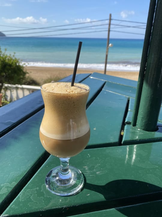 erster Frappé nach einem guten Flug!