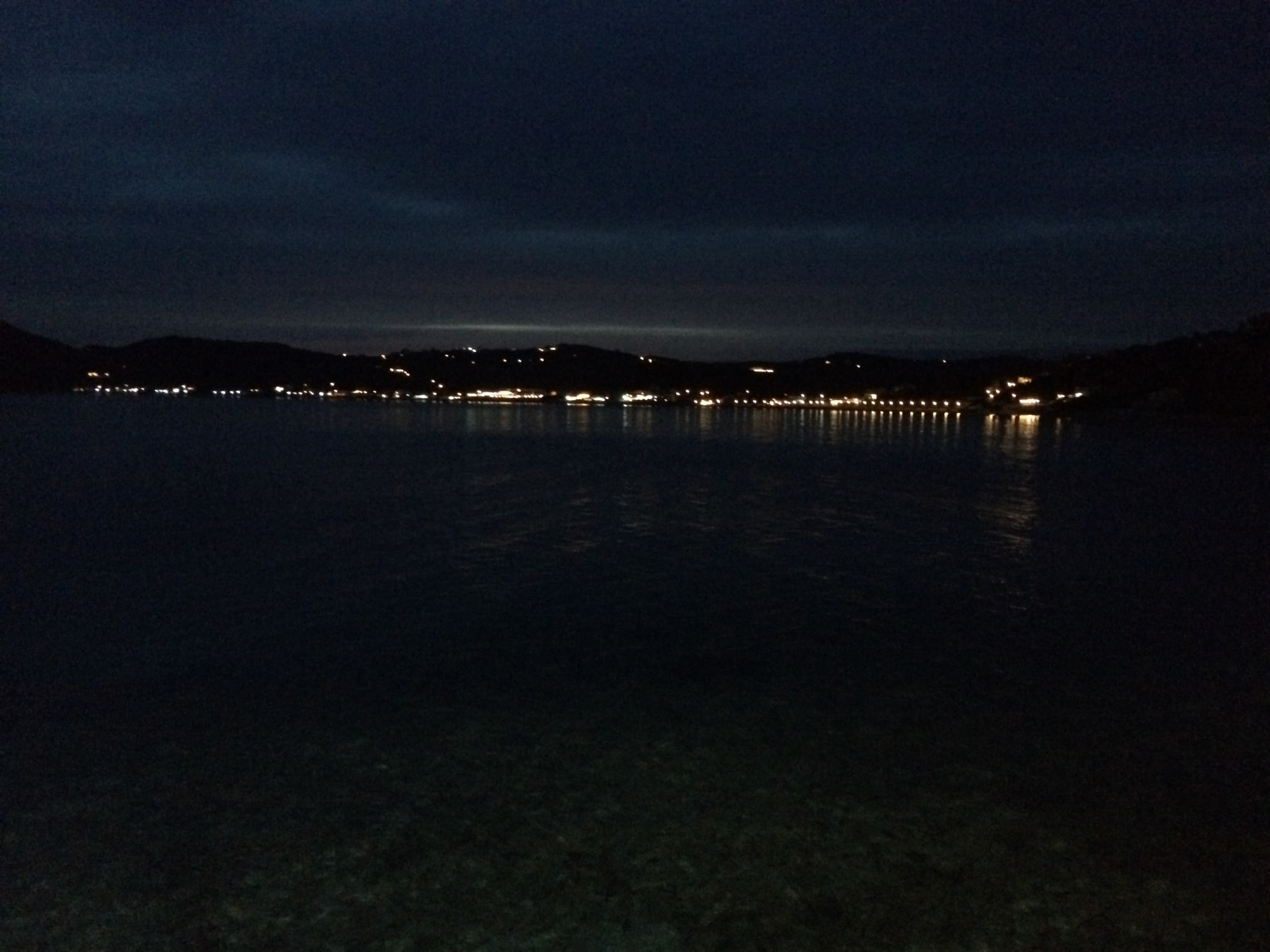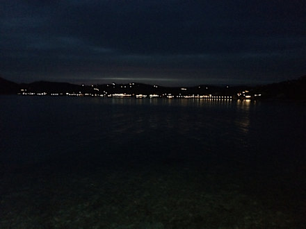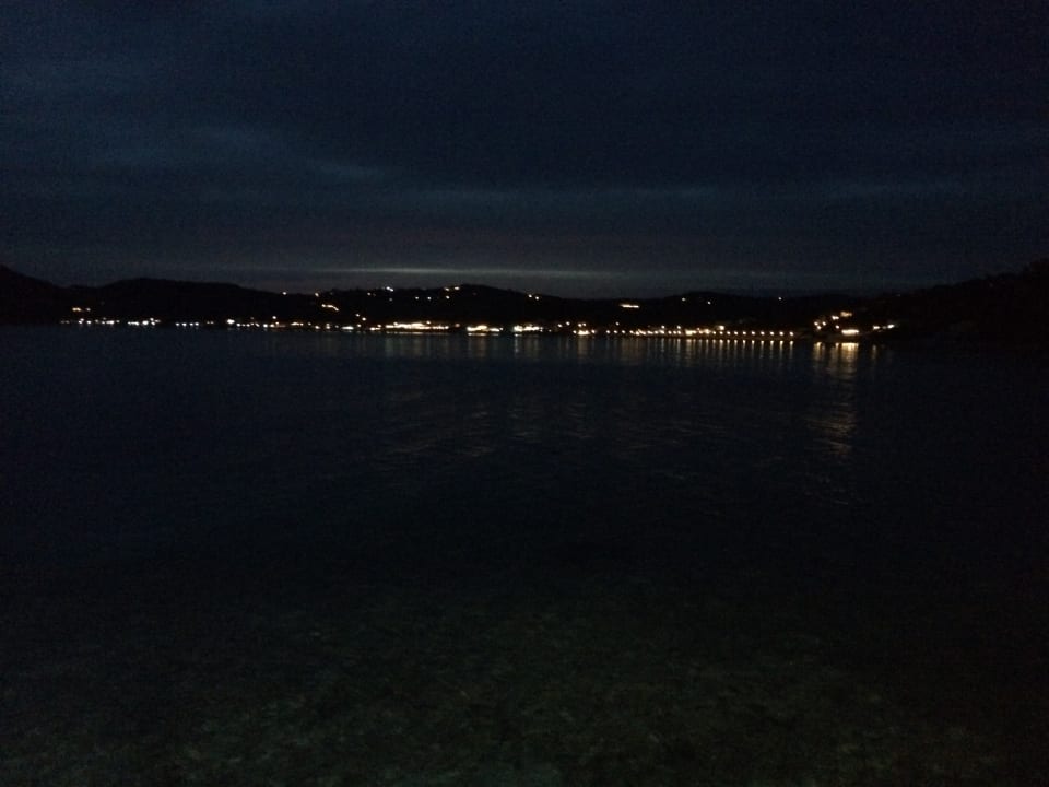 Blick von der Taverne Akrogiali auf das Hotel bei Nacht