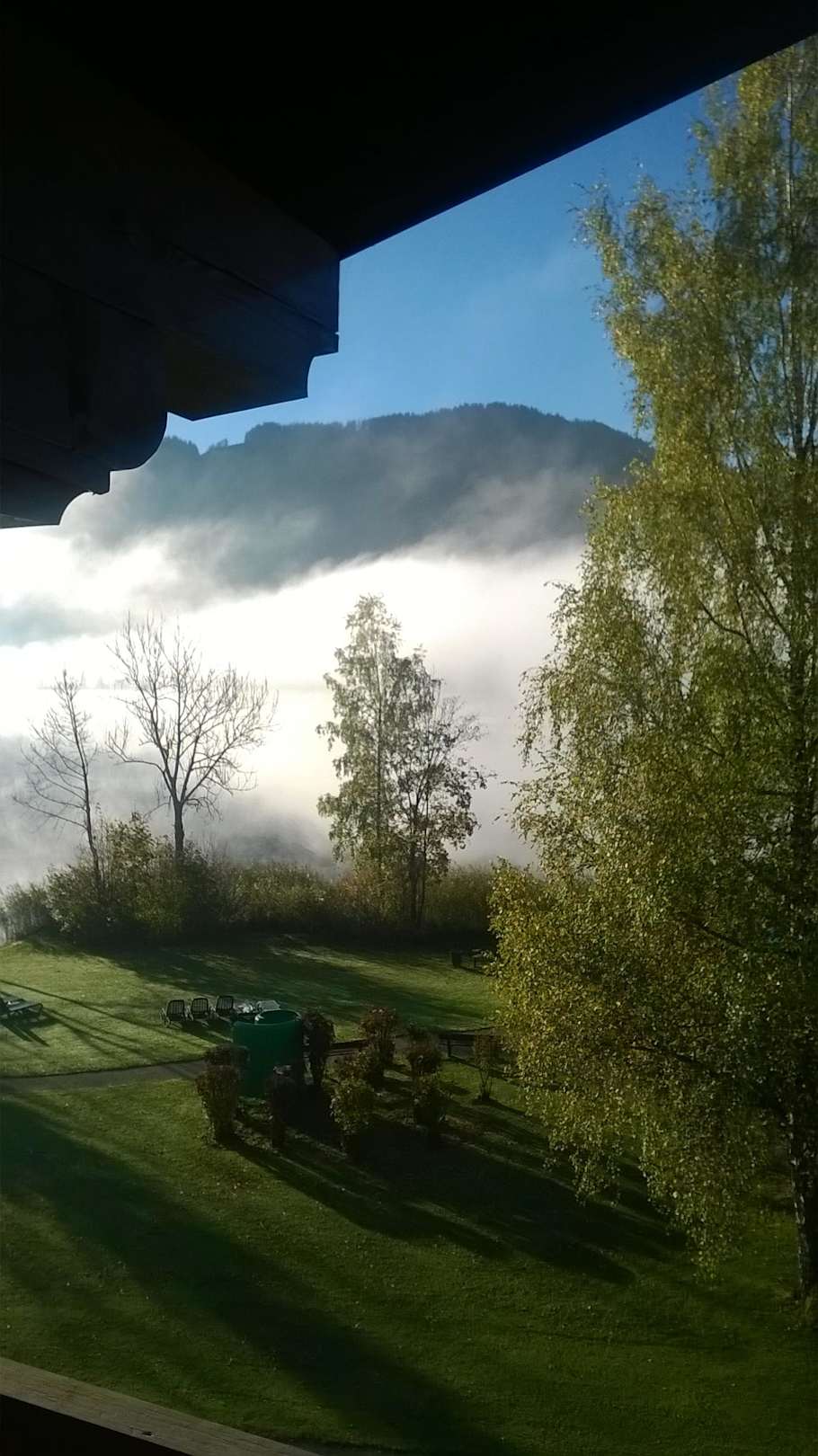 Herbstlicher Frühnebel bedeckt den See
