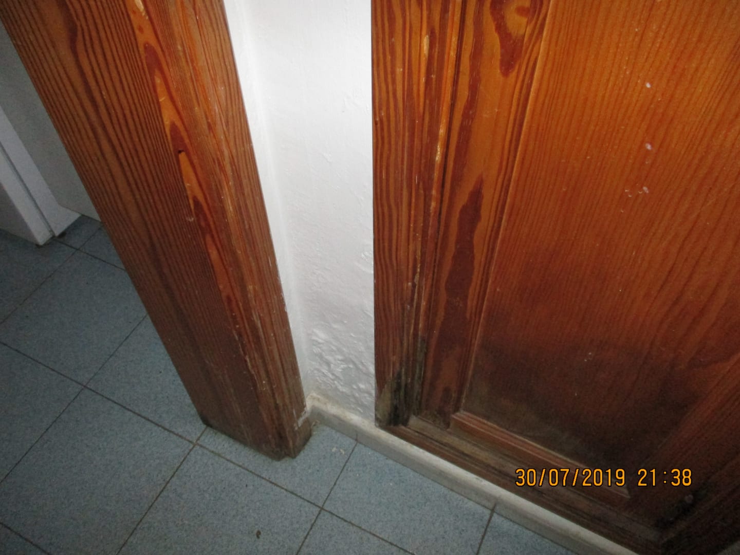 Vergammelte Schranktür und Blätterputz