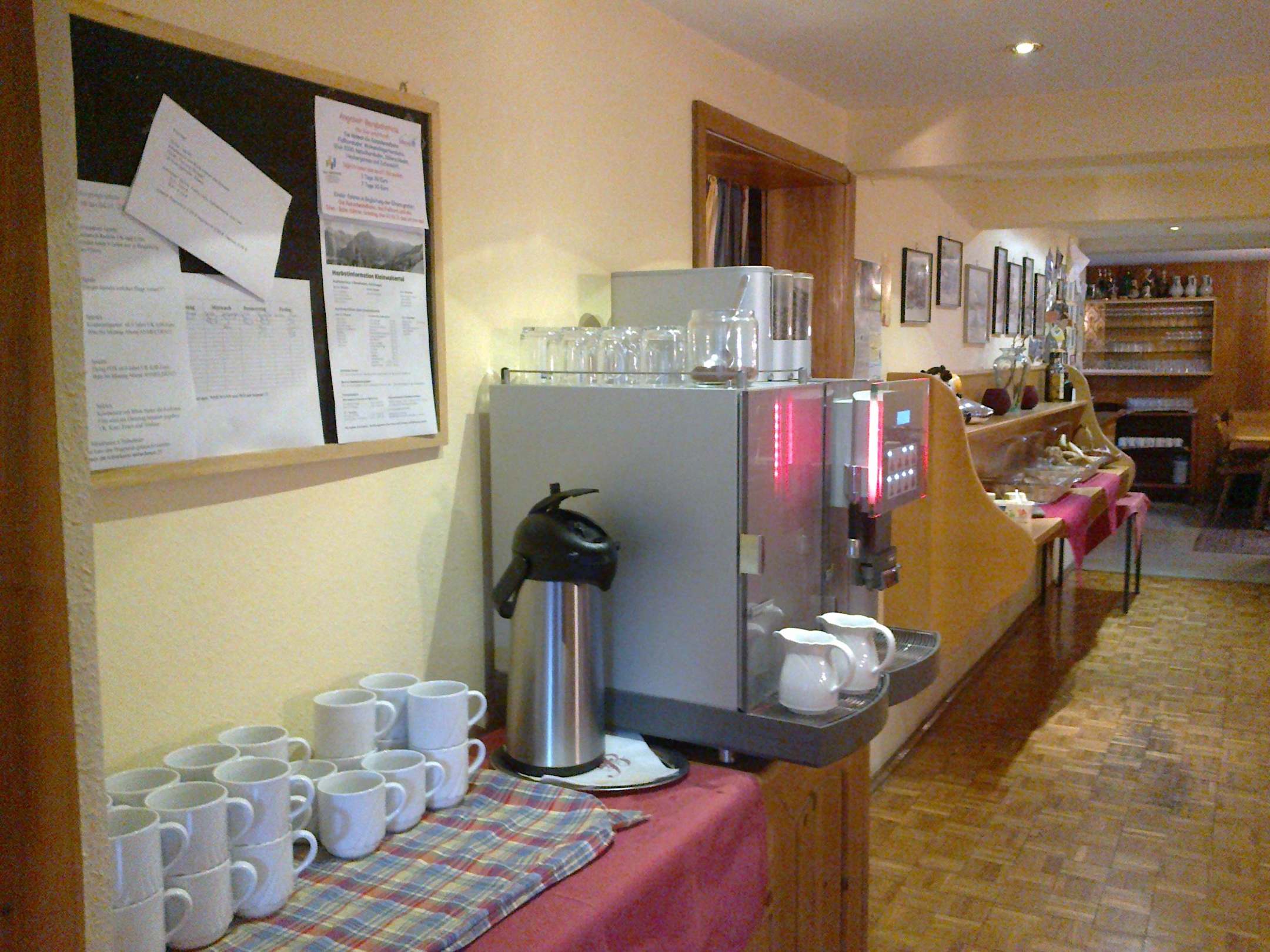 am Kaffeevollautomat kann man sich Nachmittags Cappu/Latte.... machen. Fanden wir super!
