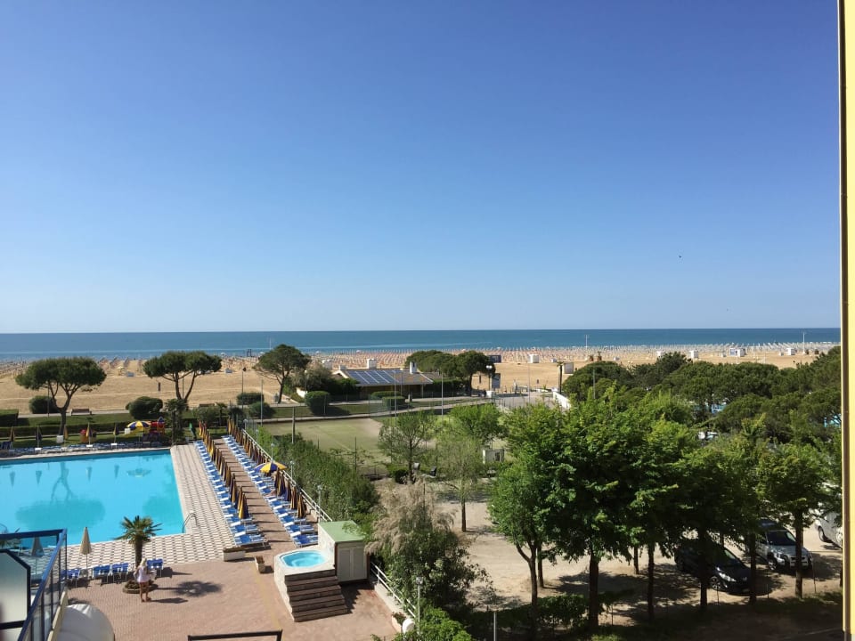 Blick vom Balkon zum Pool