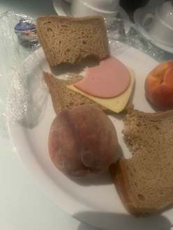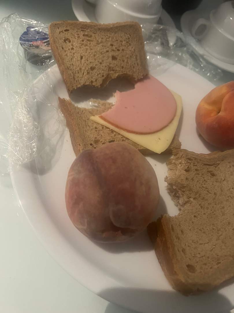 ZimmerUnser Willkomens Snack , da wir erst um 21 Uhr ankamen gab es trockenes Brot „ ohne Margarine“ . Und schimmelige Pfirsiche
