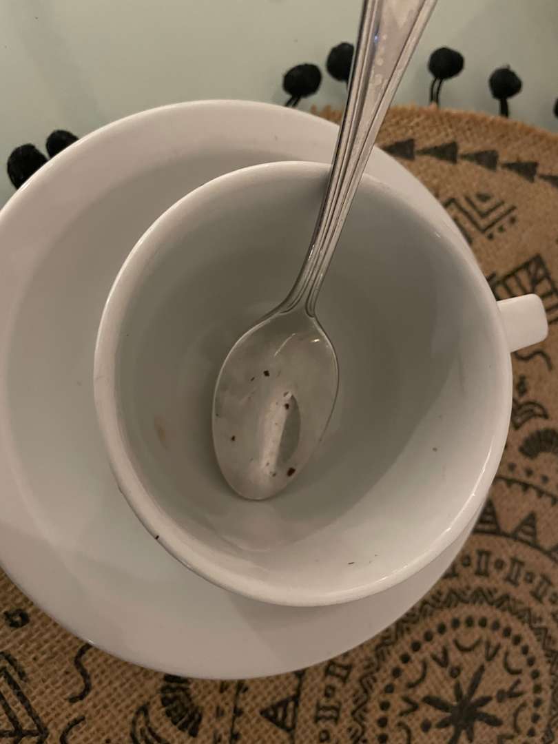 Dreckige Tasse (ja, die gilt hier als gespült)