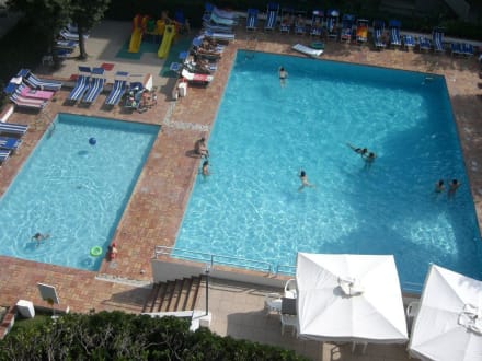 Pool /AußenanlageAuf dem Bild sind der Kinderpool, ein kleiner Spielplatz und der Schwimmerpool zu sehen.