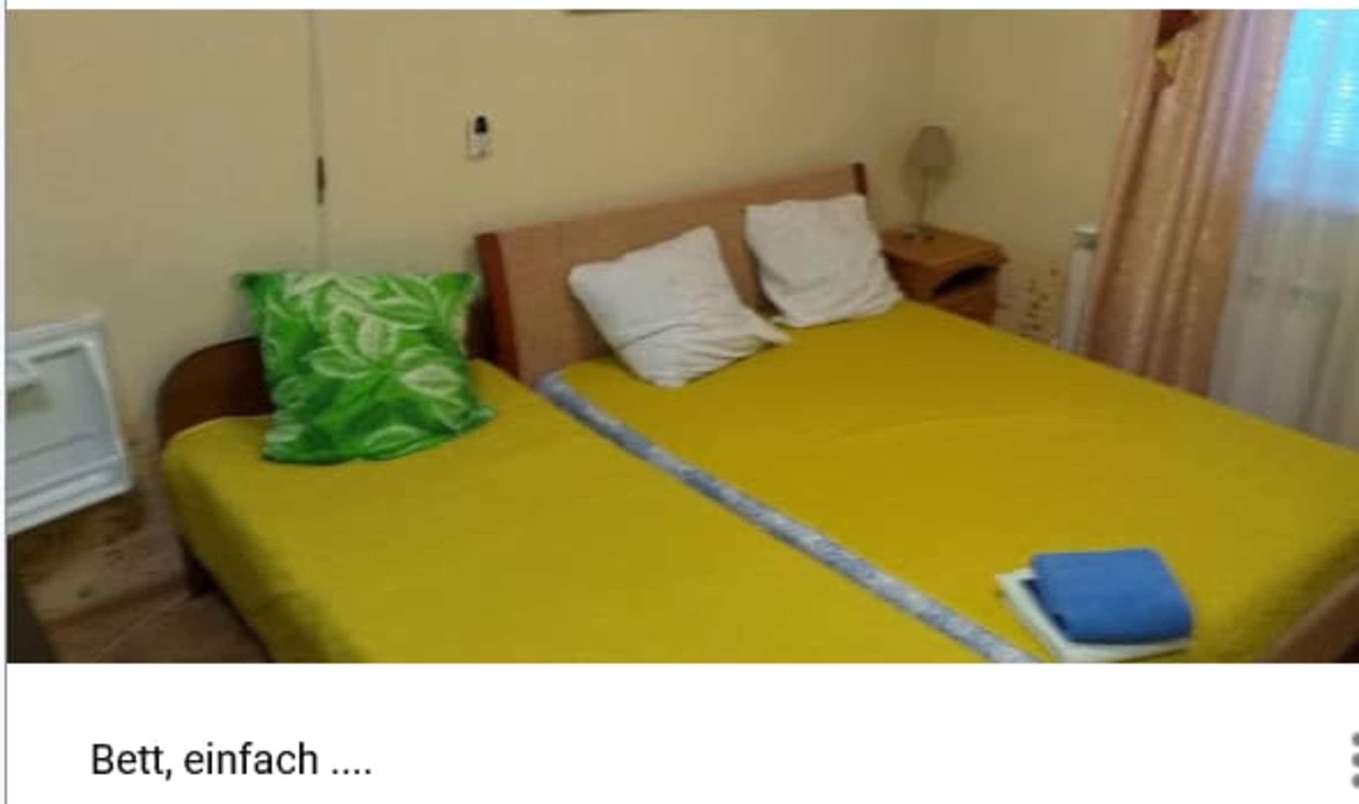 einfache Betten, enges Zimmer