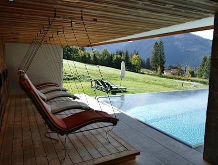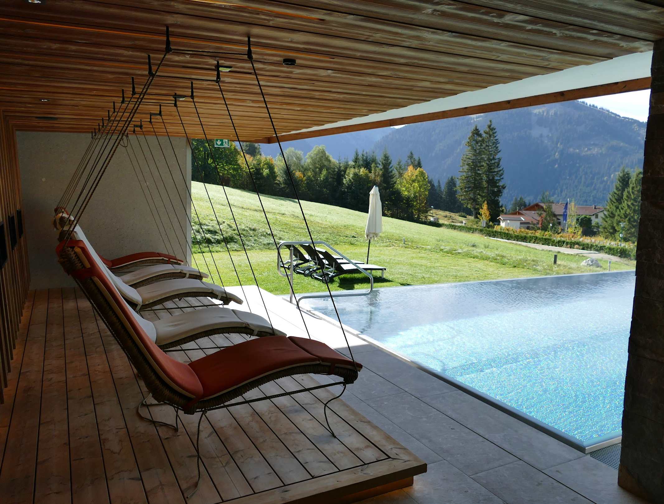 Außenliegen unter Dach hinterm Außenpool