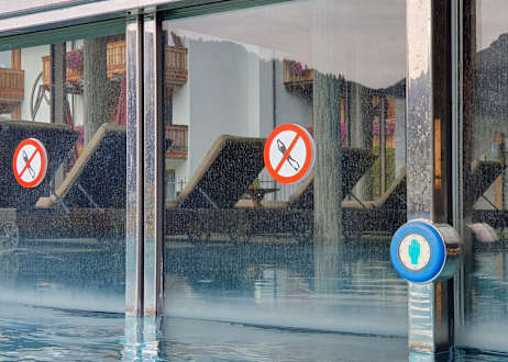 Handsymbol mit Leuchtdioden Ring, die den Druckpunkt zum Öffnen der Schiebetüren anzeigt.