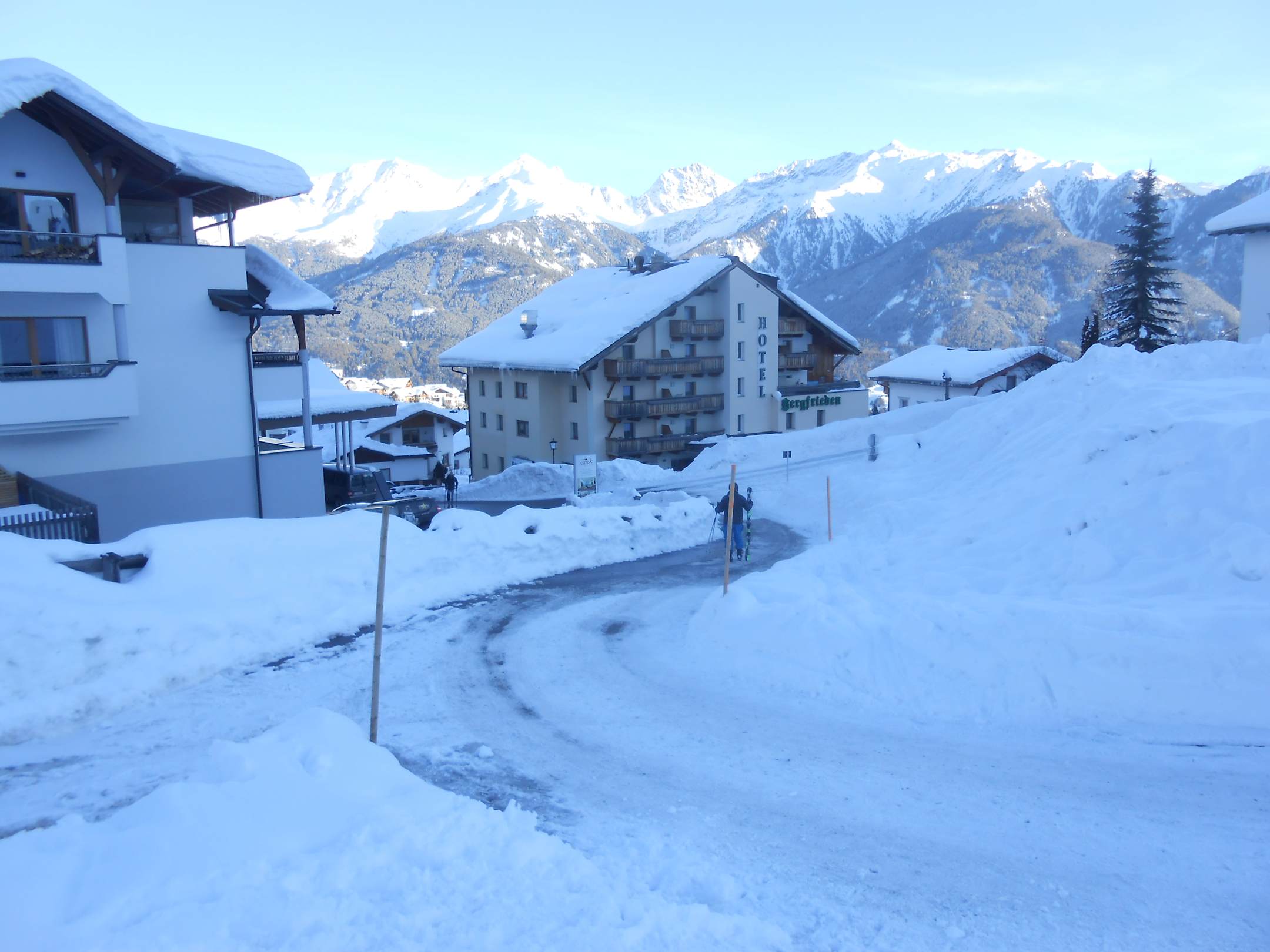 Blick zum Hotel am Ende der Skipiste