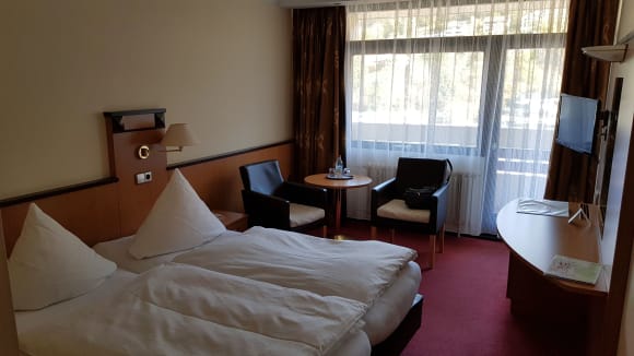 Doppelzimmer im 4.OG mit Blick auf Bad-Wildbad gemütlich modern eingerichtet