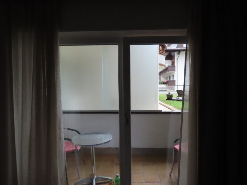 Blick auf den Balkon, leider kein schöner Ausblick (Milchglasscheibe)