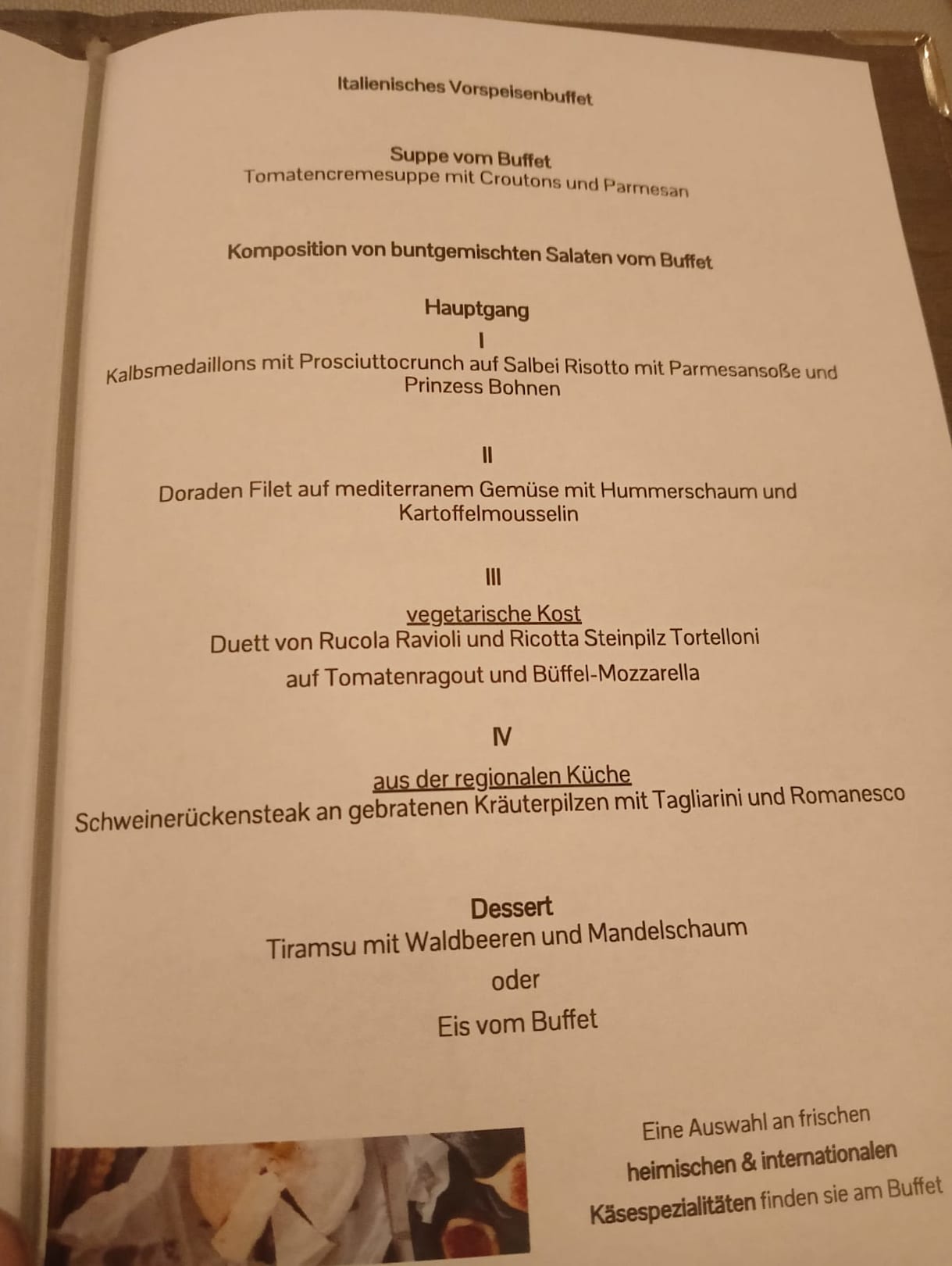 Speisekarte für den Abend