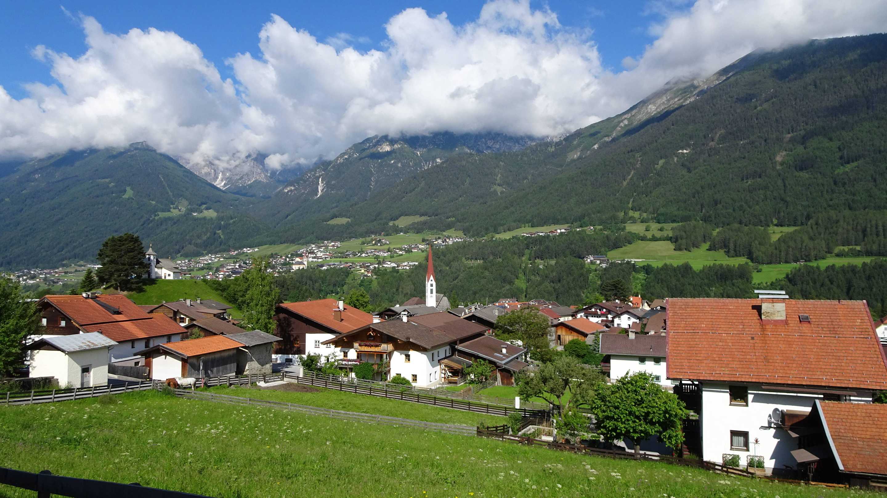 Blick auf Mieders vom Hotel Bergkranz