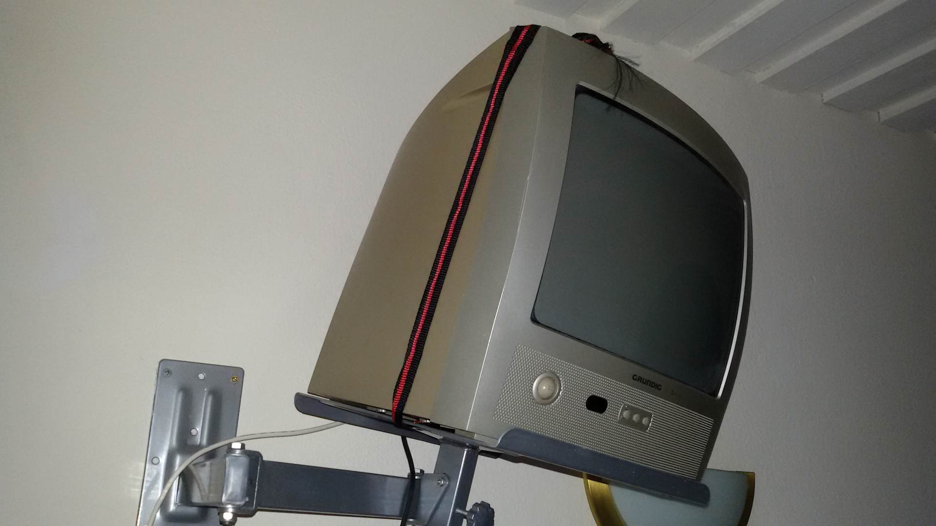 Alt , Bild grieselig, wie Schneegestöber. 10Sender zu empfangen. Trotz Bitte , ihn zu reparieren, in 1Woche nicht erfolgt. Mit Kofferband befestigt , damit er nicht abrutscht.