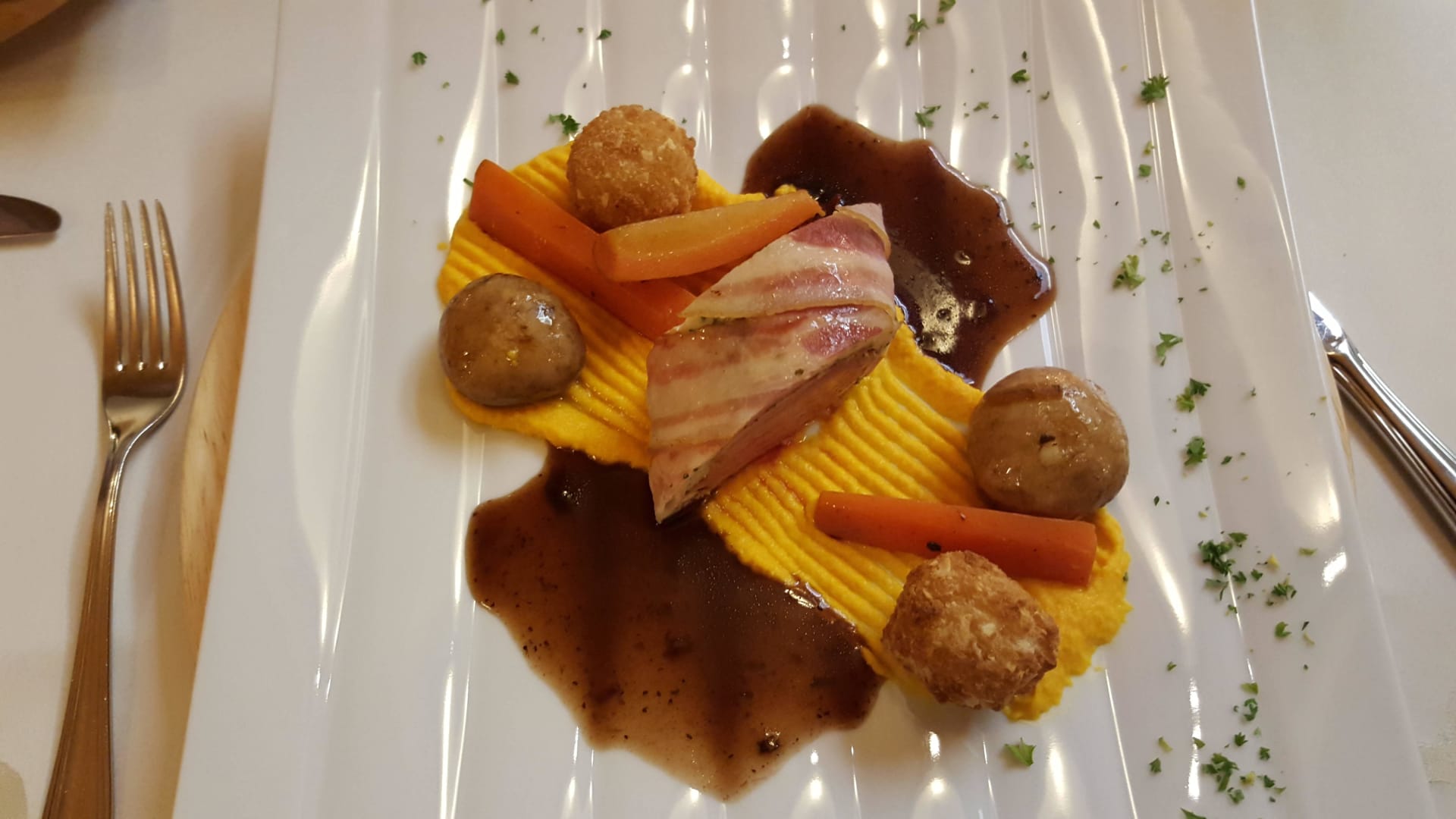 Schweinefilet auf Karottenmus mit Champignons