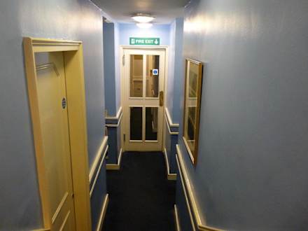 Ziemlich enger Gang. Mit einem kleinen Koffer kommt man dort gut durch.