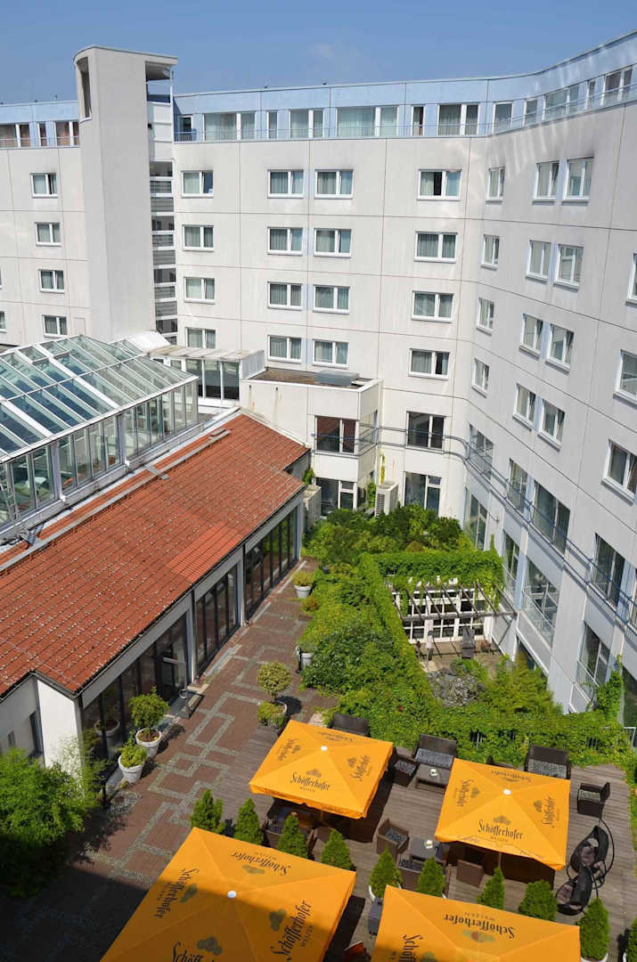 Blick vom Balkon in den Innenhof