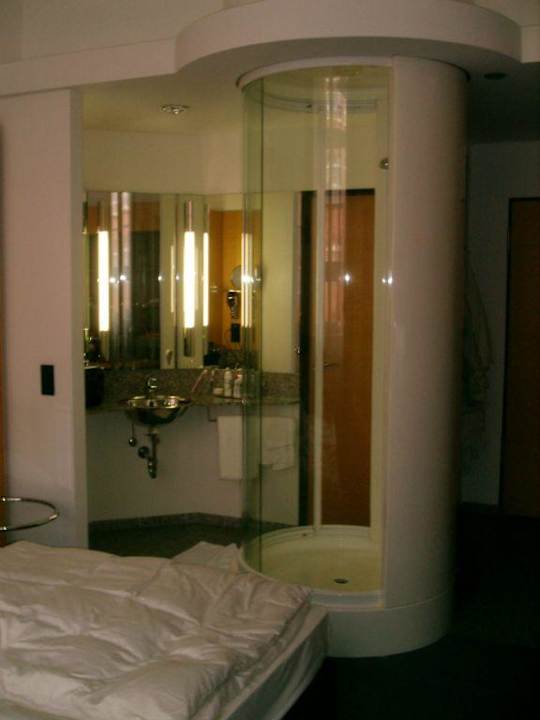 "Offenes" BadDusche und Waschbereich sind zum Zimmer hin offen.