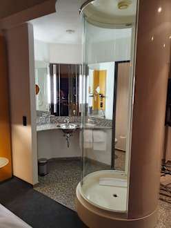 Dusche mitten im Zimmer. Super :-)