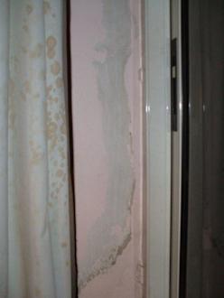 Neben dem Fenster bröckelt die Farbe.