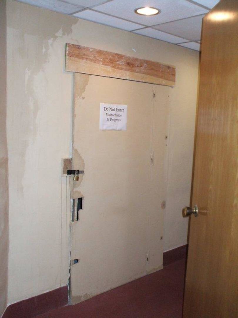 Der im Bau befindliche Abschnitt des Hotels war durch solche Türen abgesperrt.