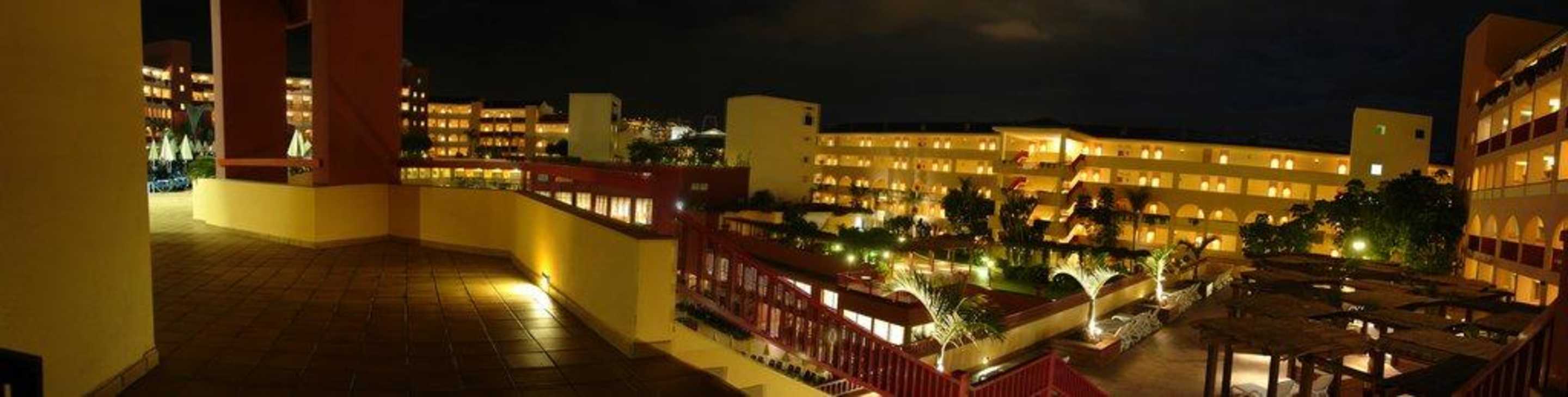 Innenbereich des Hotels bei NachtDas Hotel ist in ovaler Form terassenartig erbaut. Bild zeigt den sozusagen "Innenhof"