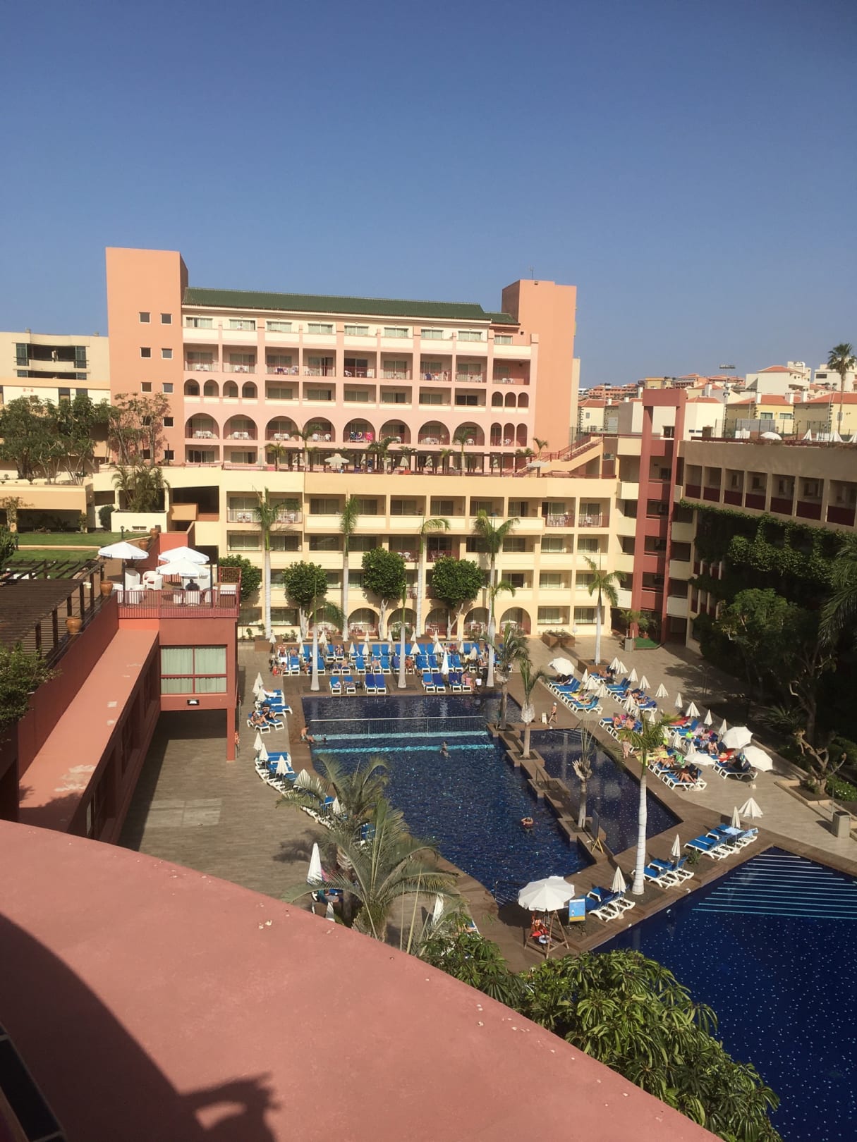 Von oben der Blick auf den Pool