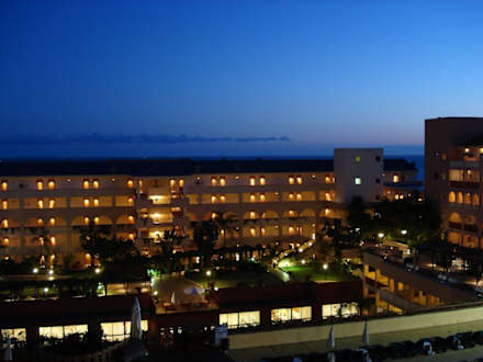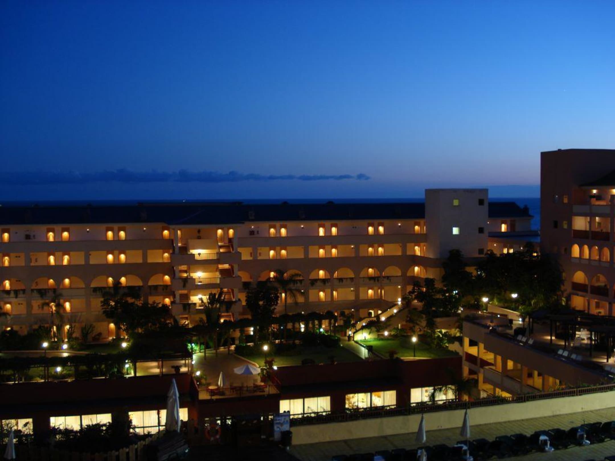 Hotelanlage bei Abenddämmerung