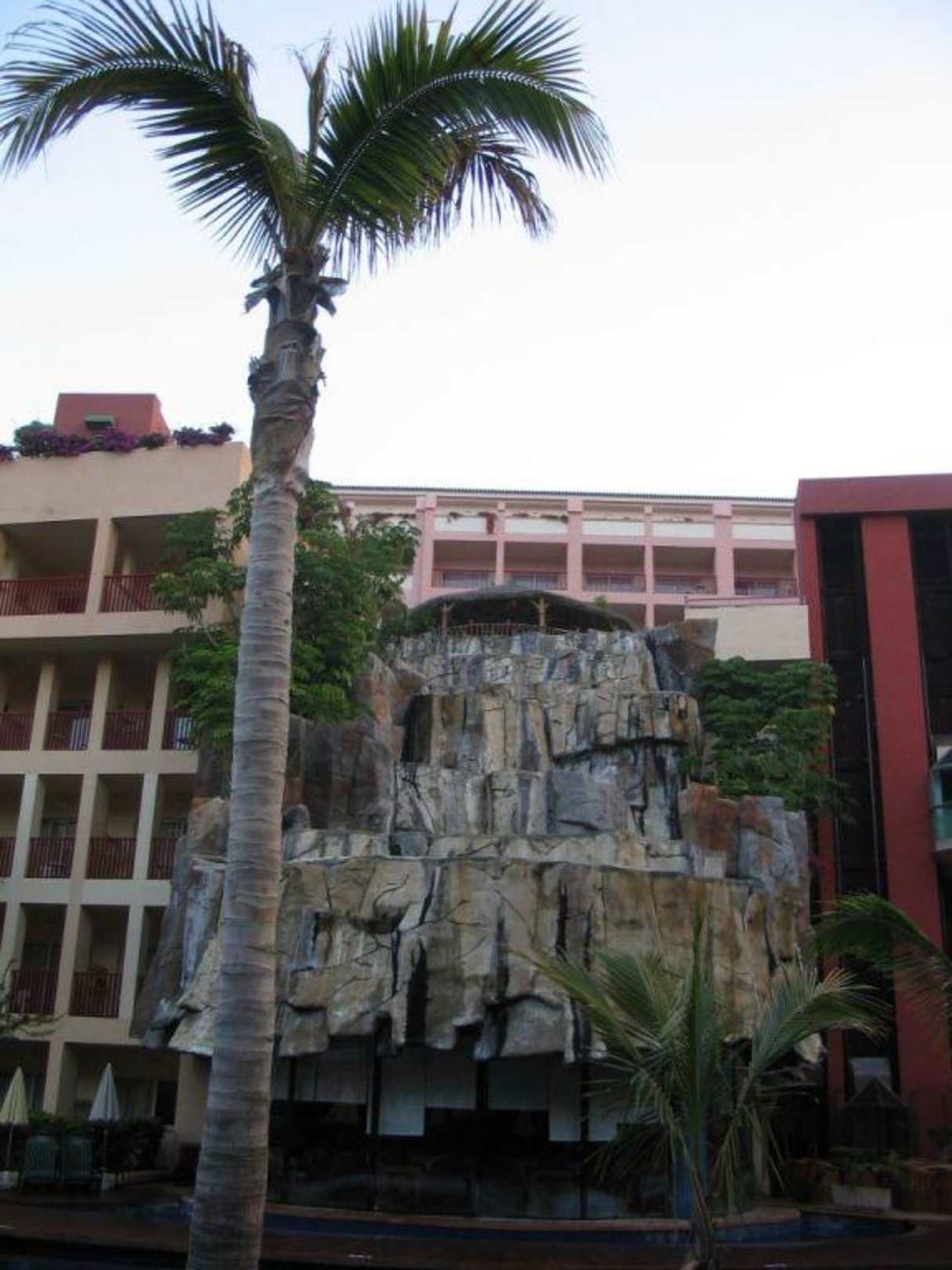 Waterfall and palm tree
