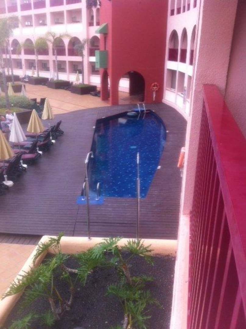 Ausblick vom Balkon zu einem der sechs Pools
