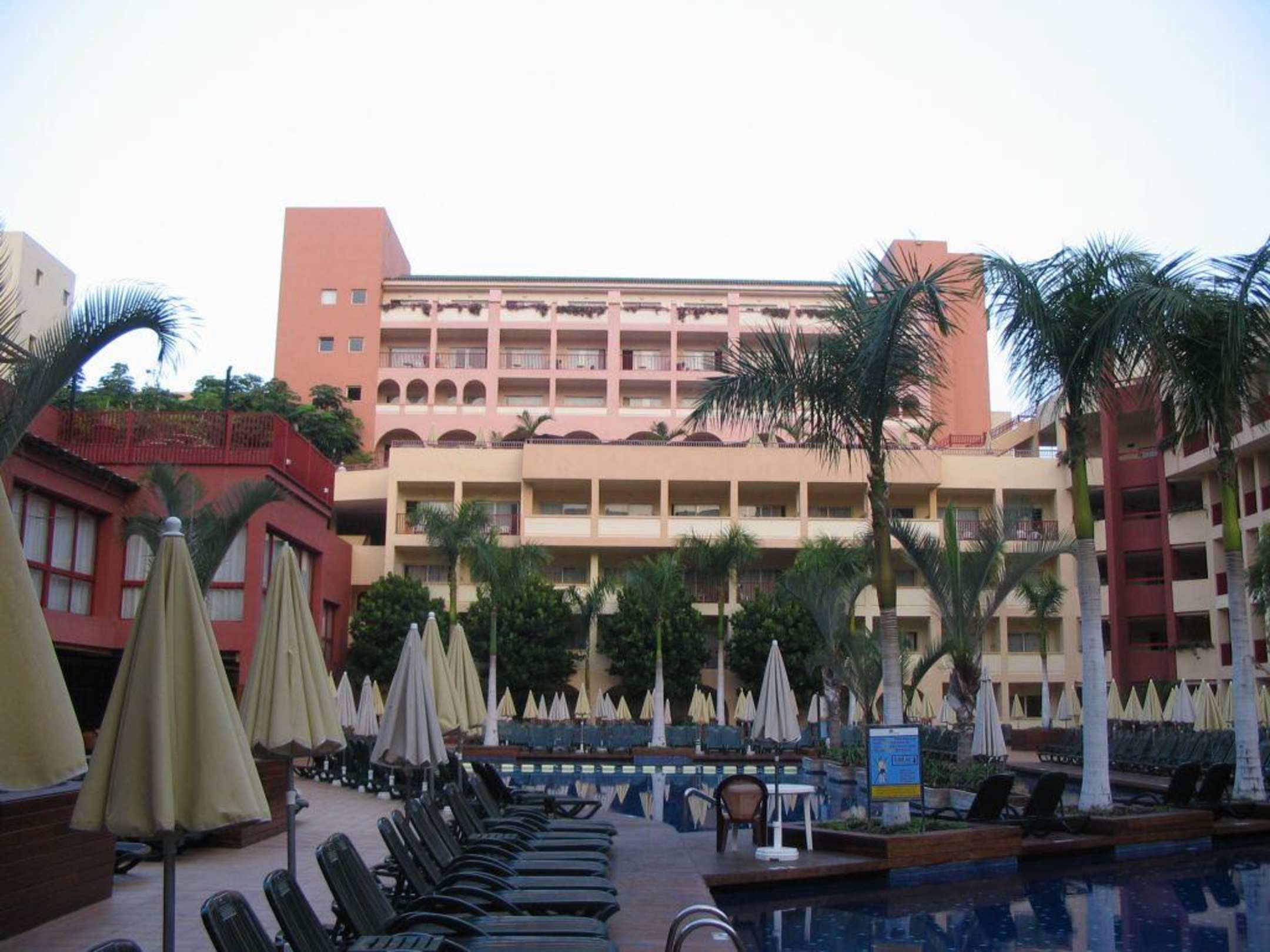Pool with parasols in the morning