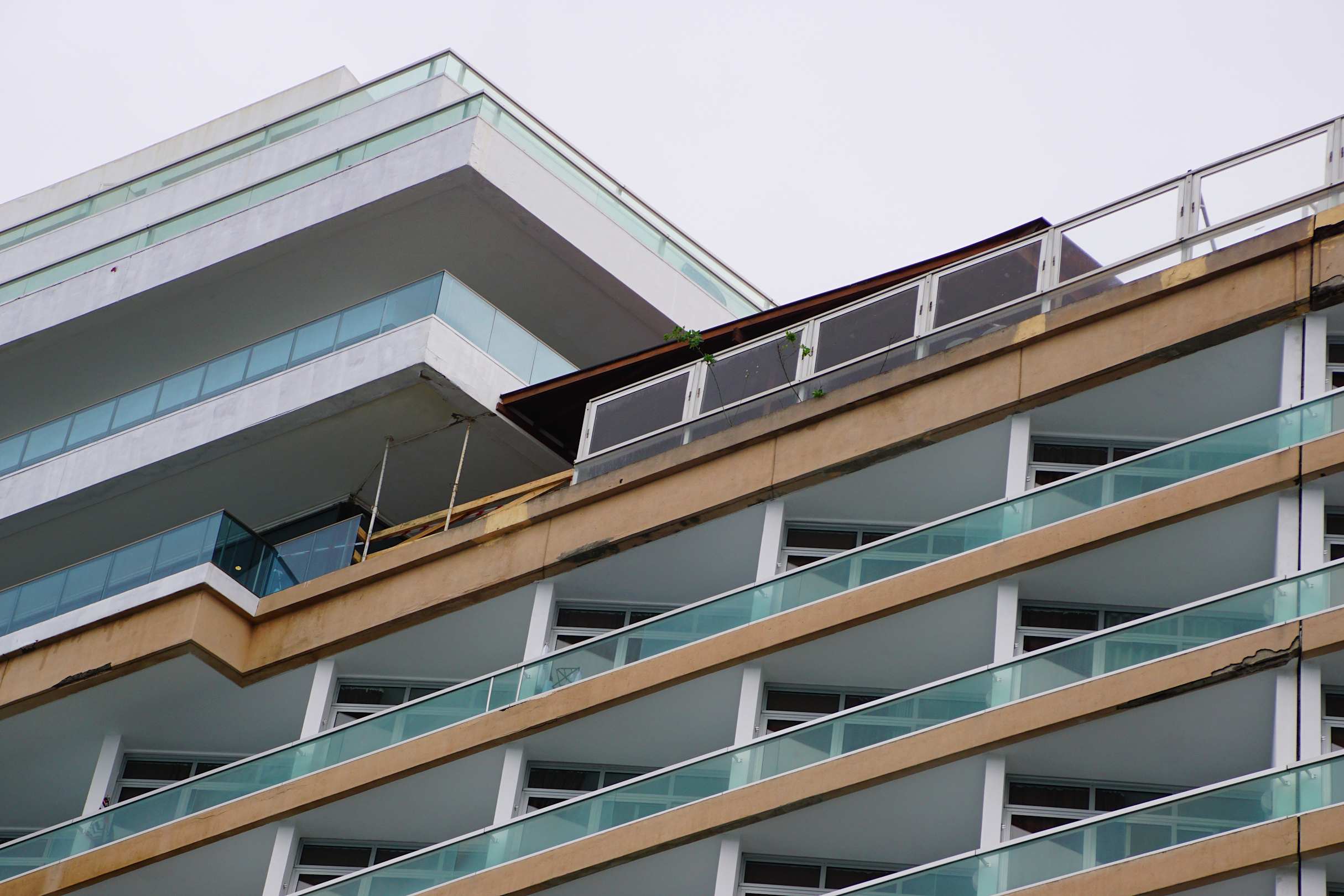 man sieht deutlich es ist keine Verbindung zwischen Glasfassade und Vordach