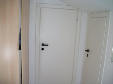 Winzige Türendie linke ist die badezimmertür die rechte führt in eine art abstellkammer wo sich schon schimmel bildet