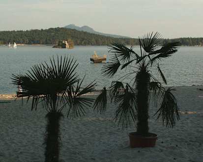 Palmen gibt es hier auch, aber nur in Kübeln. Blick zur Burg Bezdez.