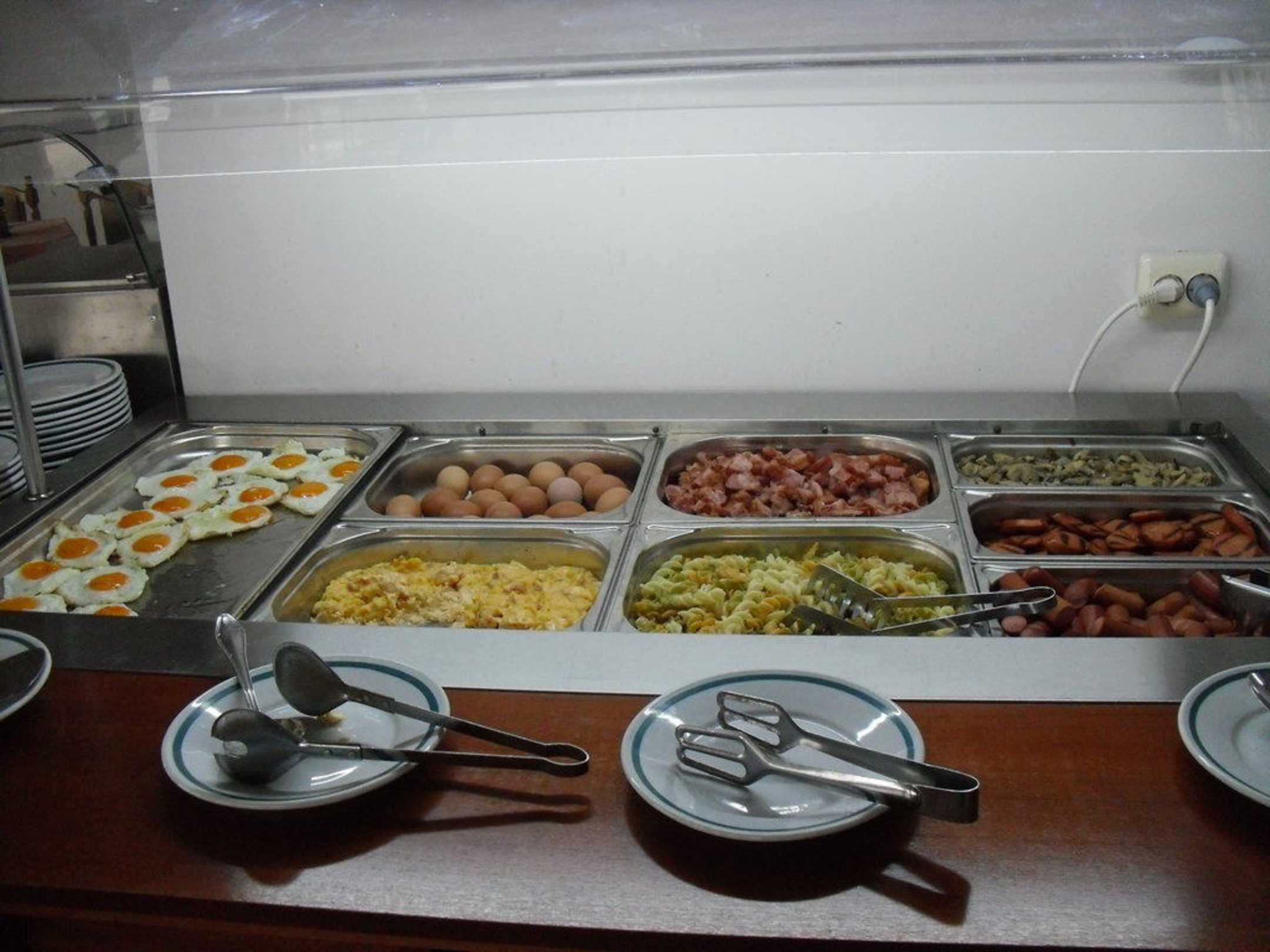 FrühstücksbuffetDer Warmanteil des Frühstücksbuffet. Ja es sind wirklich Nudeln und Pilze zu sehen. Dies wechselte regelmäßig mit Pommes... war es mag