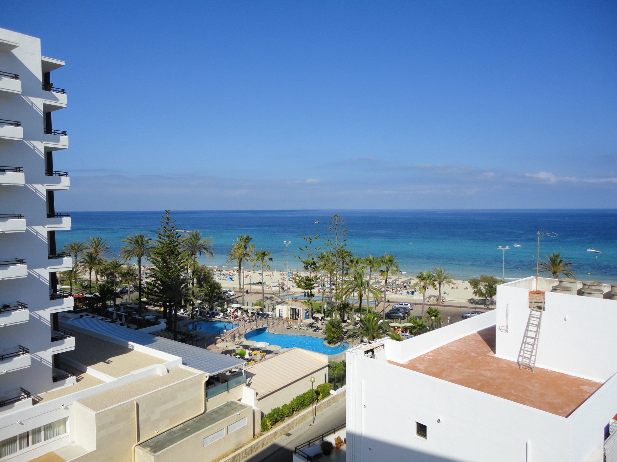Zimmer 606 Ausblick nach links vom BalkonFrontmeerblick 6.OG. nach links auf das Hotel Playa de Moro und das Meer