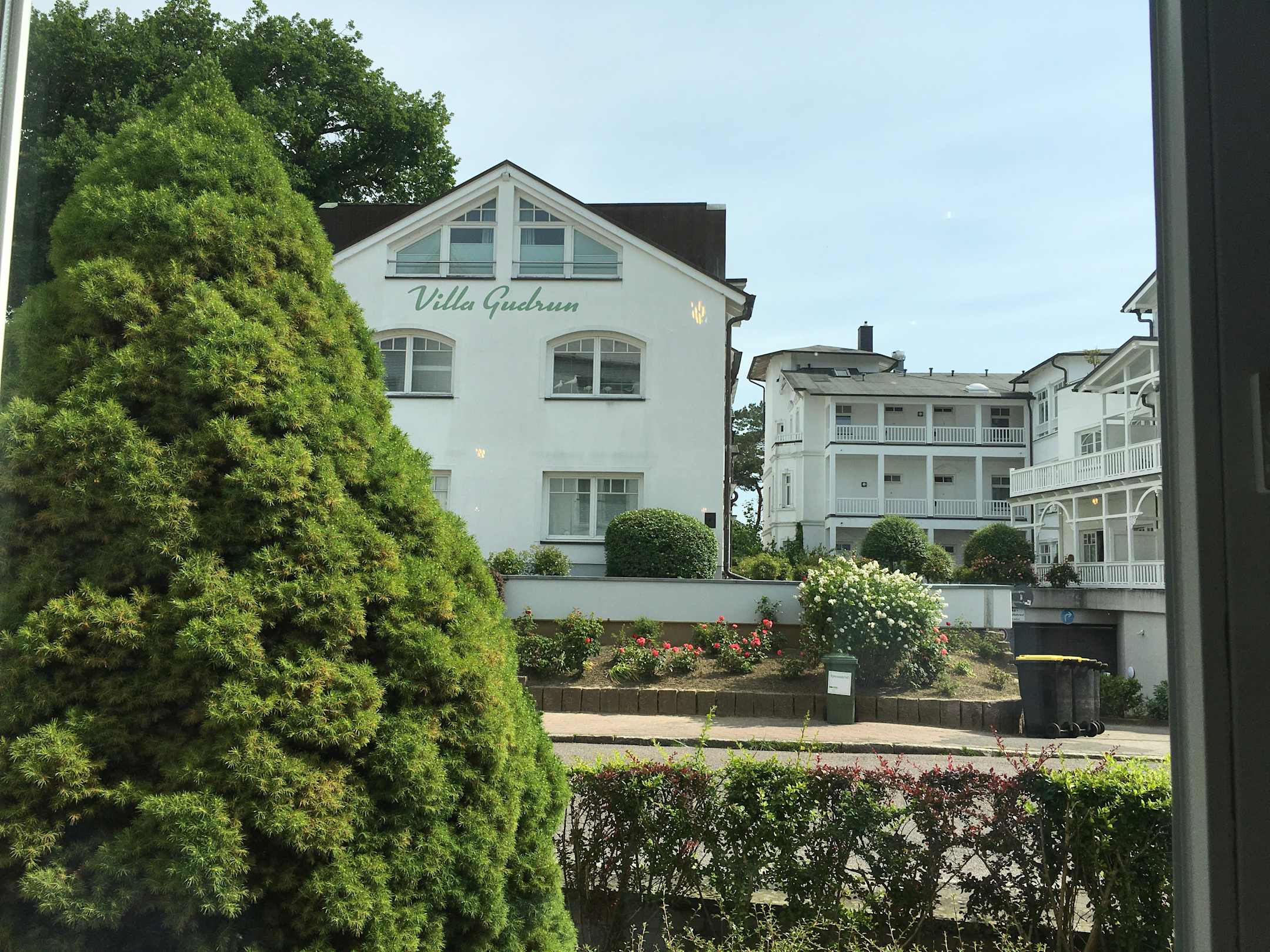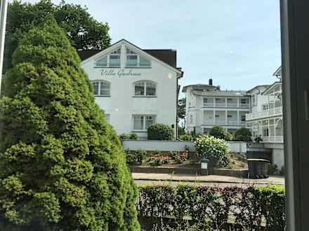 Blick aus dem Frühstücksraum Dahinter liegt Promenade und Meer