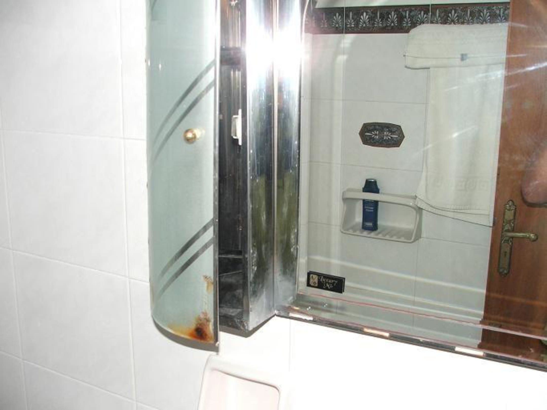 Rostiger SpiegelschrankDas Hotel ist von 1982, der Spiegelschrank könnte noch aus der ersten Ausstattung stammen