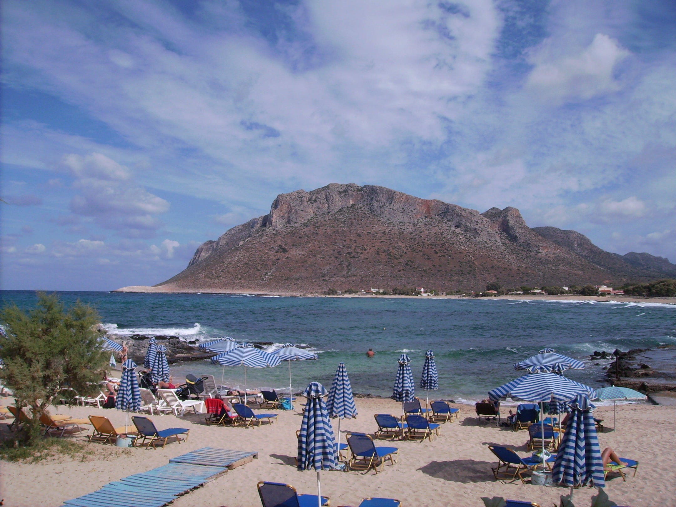 Badebucht, Liegen und Sonnenschirme "frei"