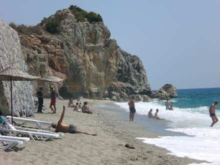 Der StrandFelsig ist der Strand nur in einer Breite von 10 Metern. Ansonsten, wie man sieht, sehr schöner Kies-(ganz fein)-strand