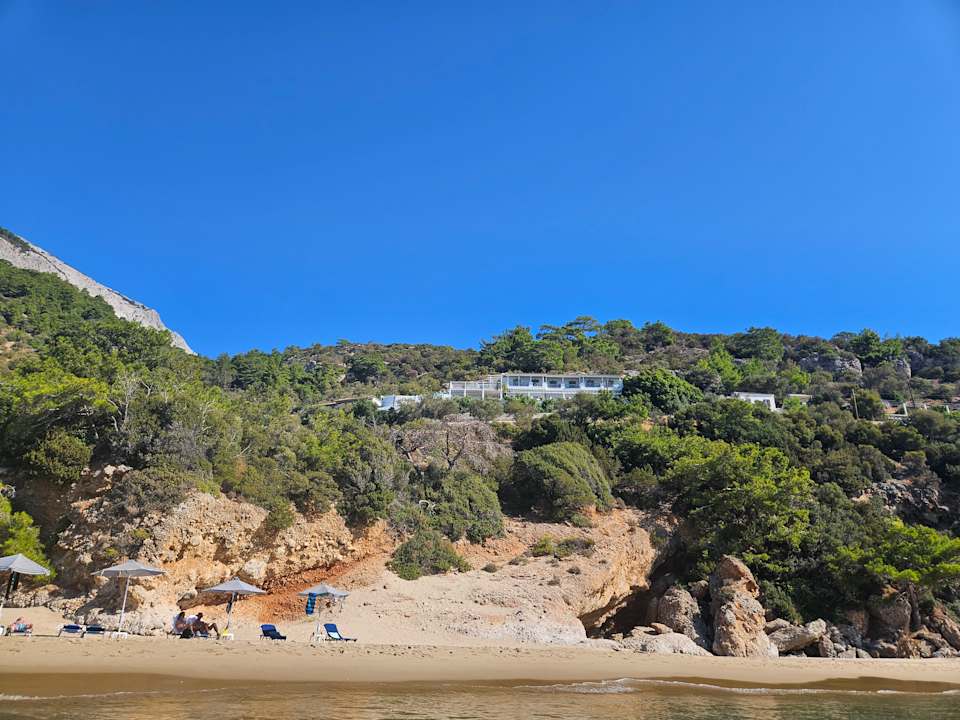 Blick vom Strand auf das Hotel