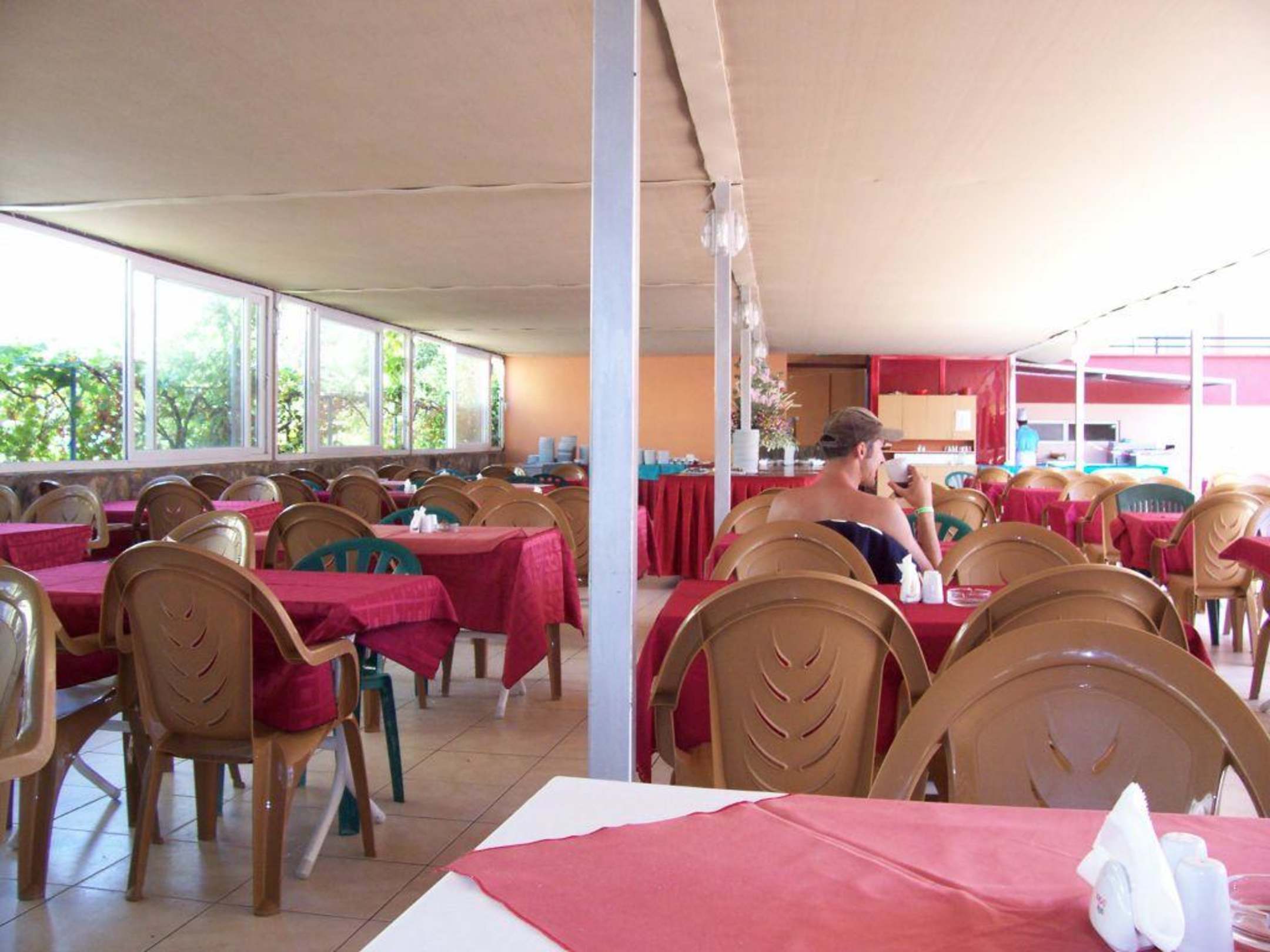 Das Restaurant lieblos unter einem Dach eingerichtet sehr,sehr eng und warm. Wenn man keinen Platz bekommen hat durfte man unter freien Himmel essen weil die Plätze sehr begrenzt waren.