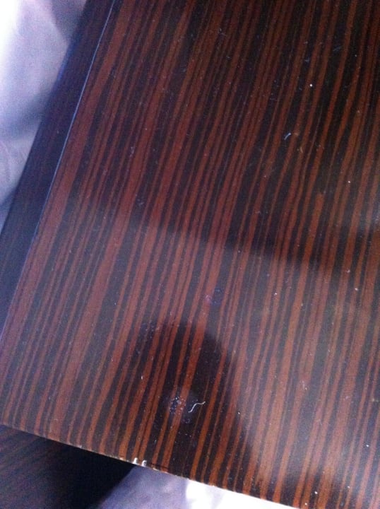 Weiße Flecken am Nachttisch und am Kopf des Bettes