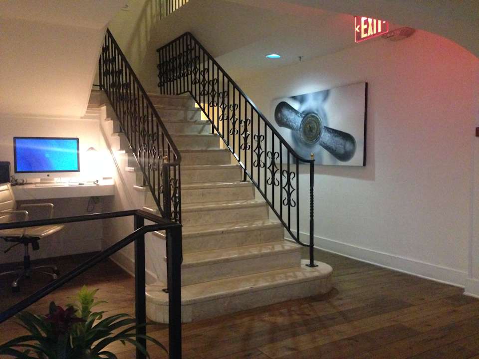 PC und Treppen zu den Zimmern