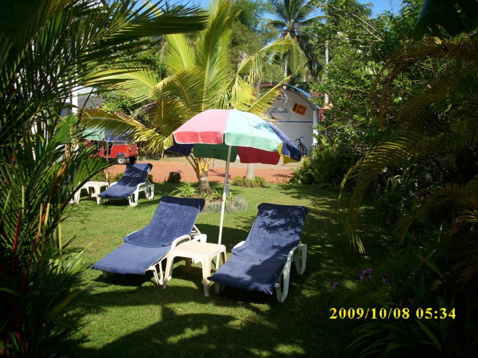 Alles von Blumen und Pflanzen umgeben. Kolibri`s und kleine Papageienarten durchstreifen den schoenen Garten mit dem großen Pool.