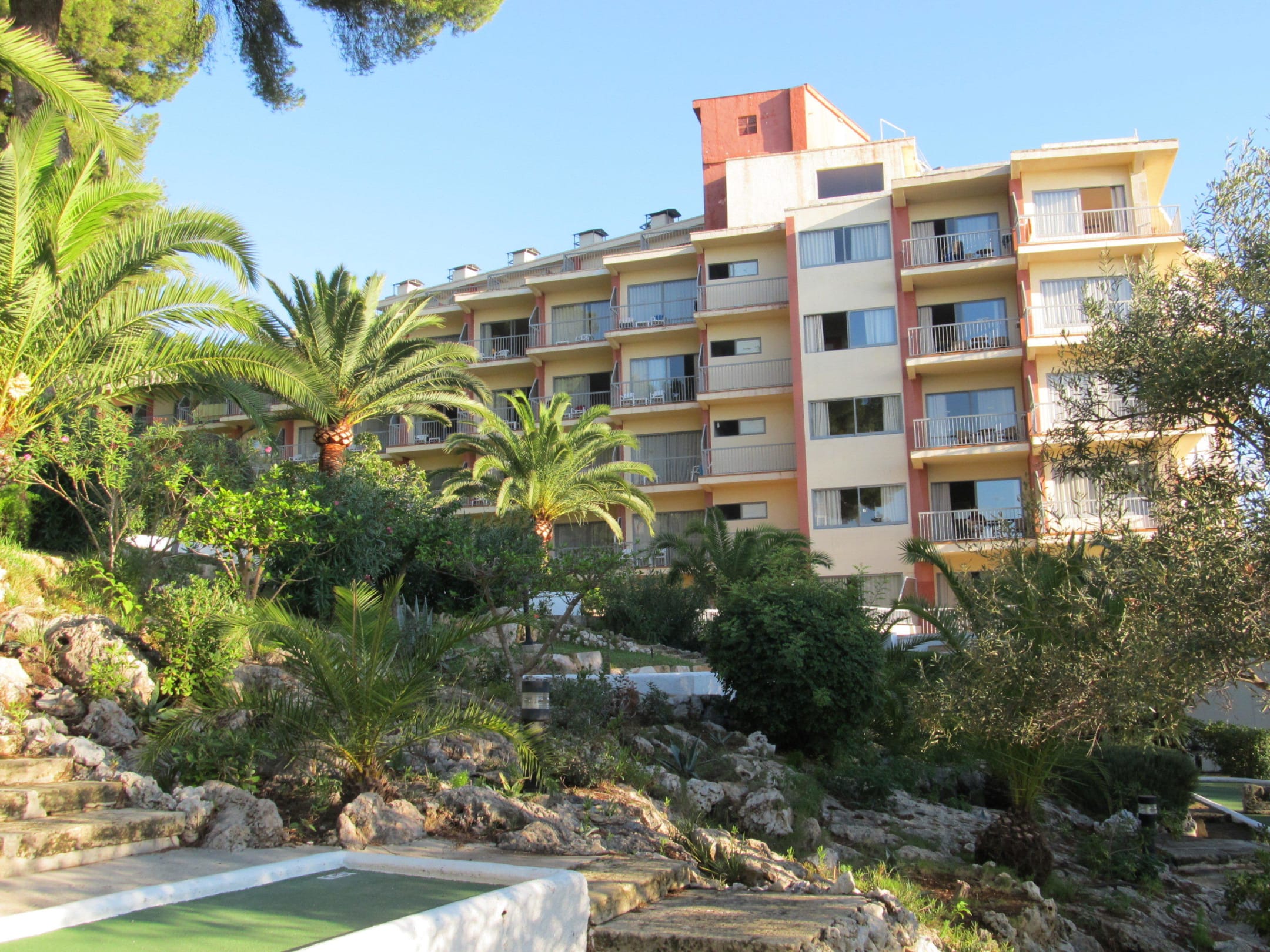 Blick zum Hotel von der Minigolfanlage