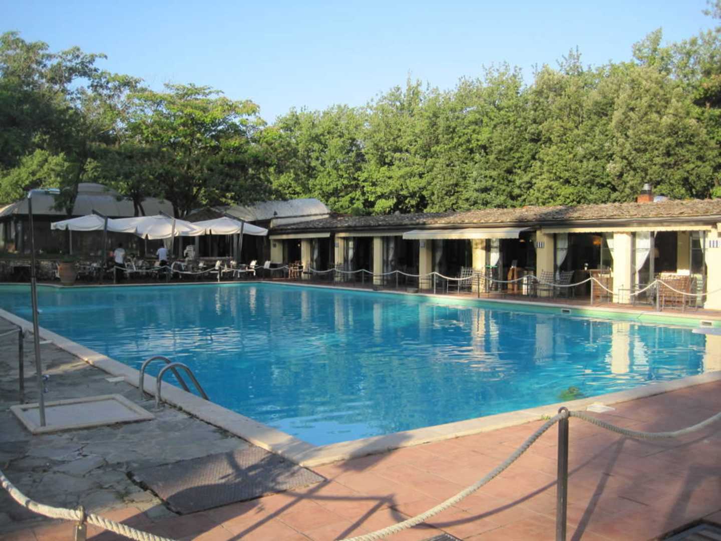 Pool hinterhalb Restaurant und Poolbar