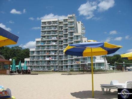 Blick vom Strand zum Hotel